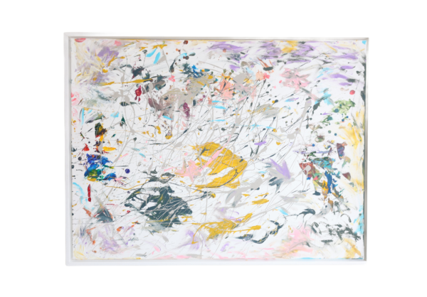 Als een vis in het water is een bijenwas met acryl in wit houten baklijst