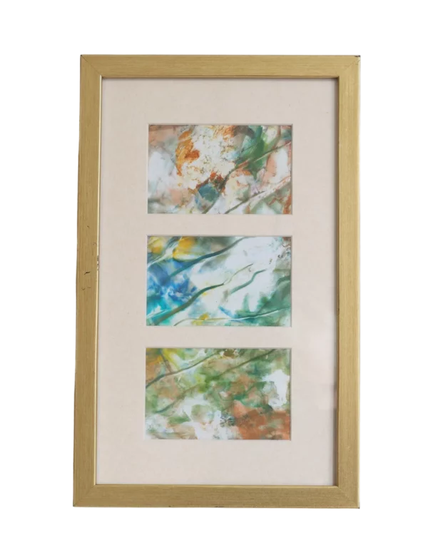 Gedragenheid bestaat uit drie bijenwassen in een vintage goudkleurig lijstje