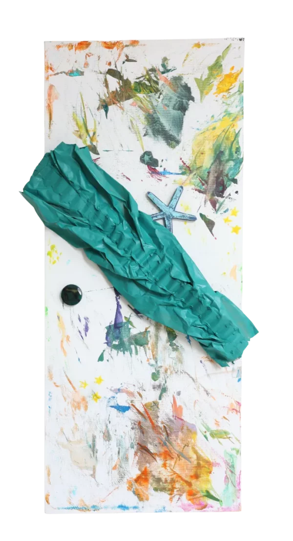 Kleurrijk onderwaterleven is een bijenwas met papier op 3D herbruikt schilderdoek
