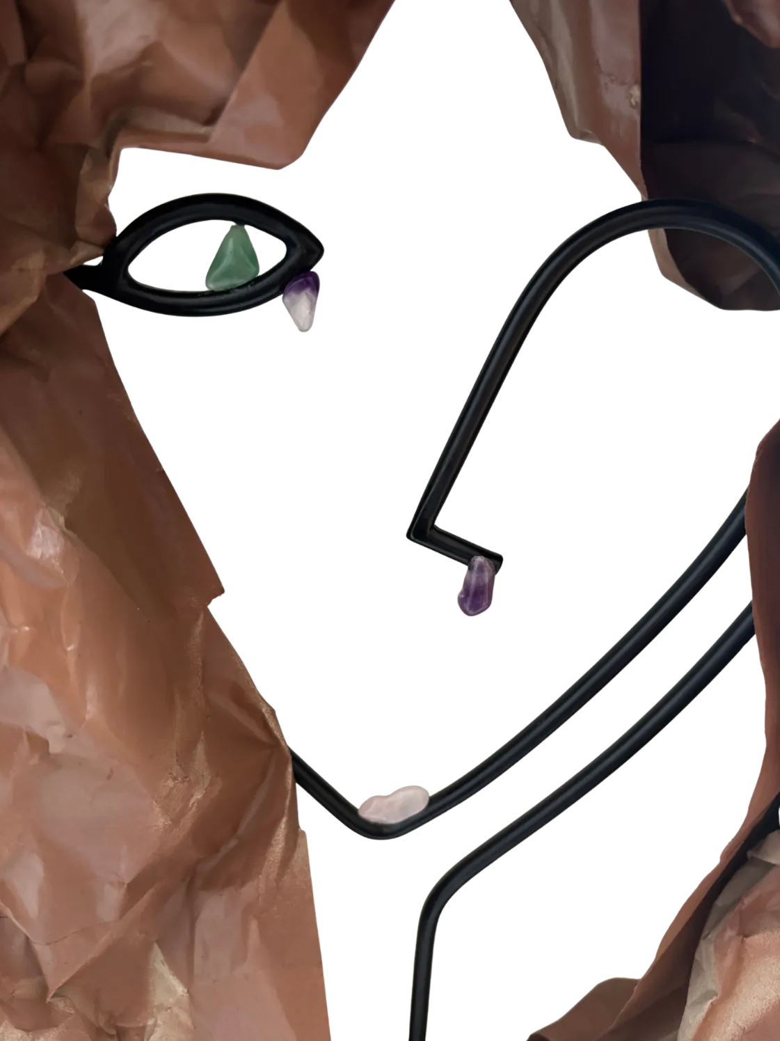 Rouw is een vrouw gemaakt van ijzer met papier en rouwmineralen